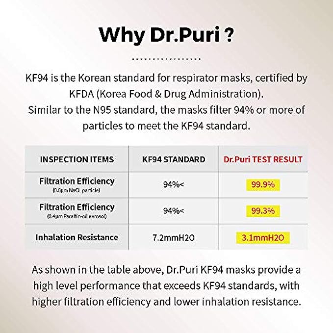 • US FDA Registered and Korea FDA Approved. KF94 Grade Certified Premium Mask Made in South Korea