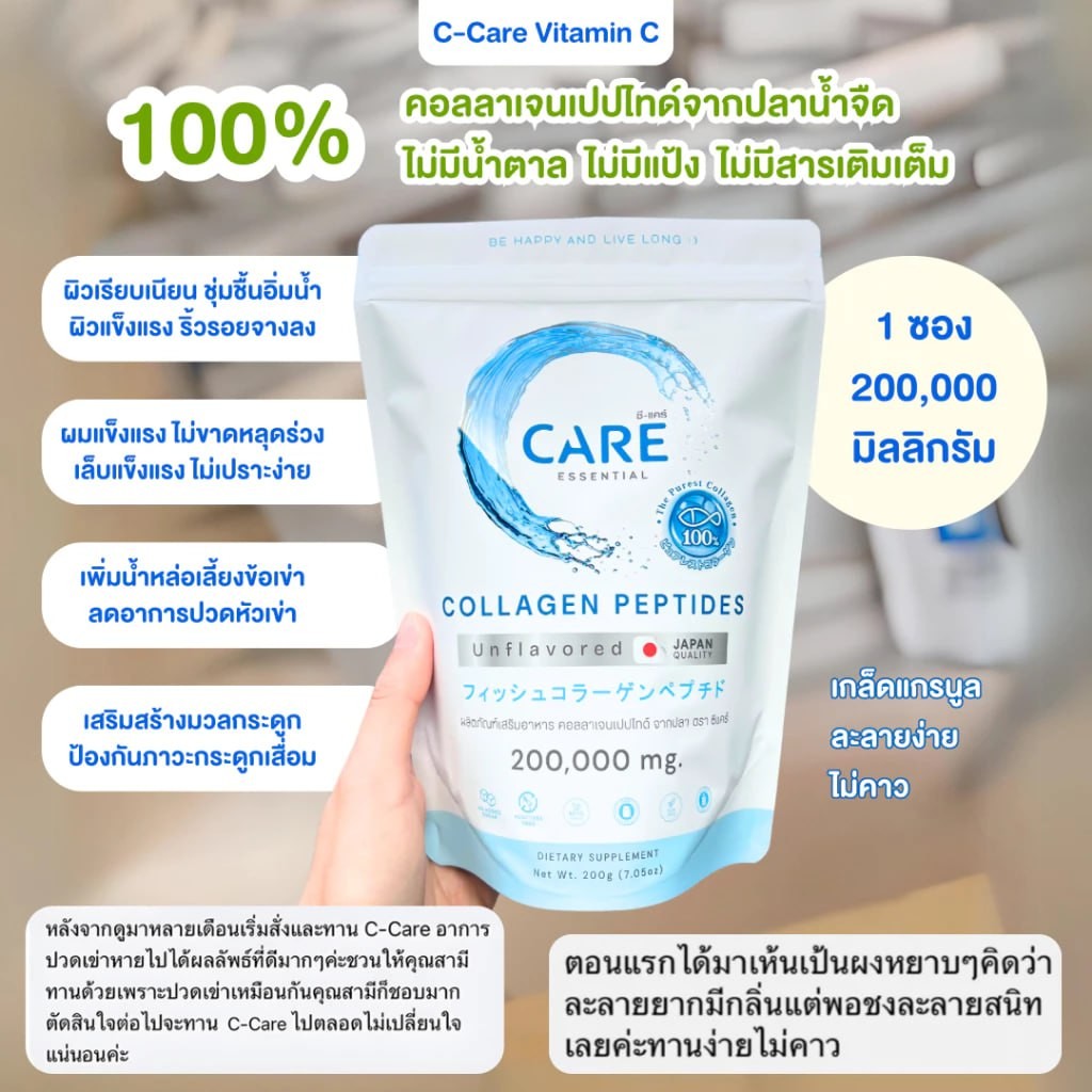 ซี-แคร์ คอลลาเจน ขนาด 200 กรัม 1 ซอง เทียบเท่า คอลลาเจนแท้ 200,000 มิลลิกรัม รับประกันของแท้ 100%