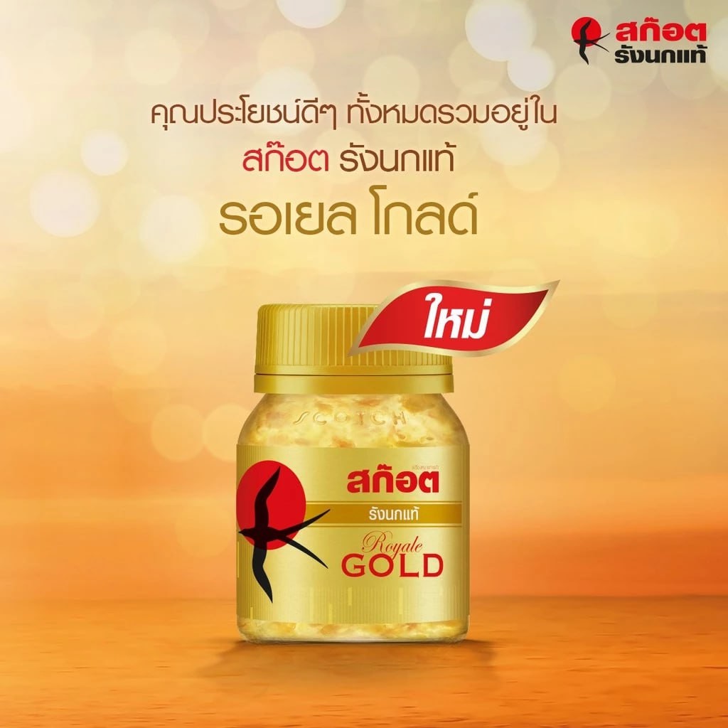 (โฉมใหม่)สก๊อต รังนกแท้ รอเยล โกลด์ 42 มล. (แพ็ค 6 ขวด) แถมกระเป๋า