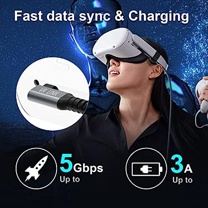 • 【High Speed & Fast Charging】With data transfer speeds of up to 5Gbps, the oculus quest 2 charging cable allows for fast connection to Oculus Link programs for lag-free use of VR headset, supports 3A fast charging and provides a smooth gaming experience.