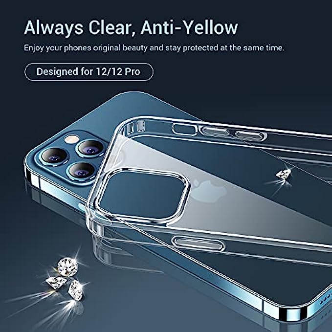 Elando Crystal Clear Case Compatible with iPhone 12/12 Pro, Non-Yellowing Shockproof Protective Phone Case Slim Thin, 6.1 inch