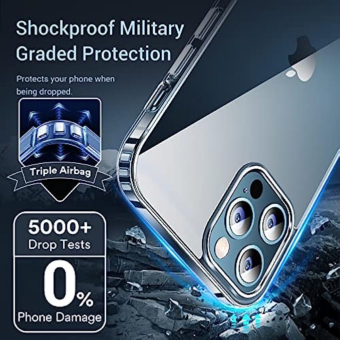 • Military Grade Shockproof Protection: Our case is equipped with 12 built-in airbags at the four corners, which can effectively cushion the phone in the event of a drop or impact. The back plate adopts a composite sheet of rigid polycarbonate and polymethyl methacrylate combination to ensure transparency and hardness while improving crack resistance. The anti-fall capability reaches the U.S. military-grade standard.