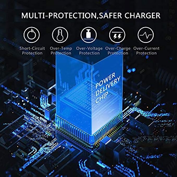 • Protection Function: Fireproof material. USB C power adapter fire proof shell and over charging, over currents, and over heating. Charging stops when battery is full.