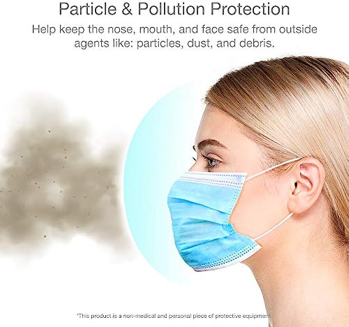 Unifandy Disposable Face Masks, Pack of 100 Face Mask Protective Dust Particle 3-Layer Design and Earloop, ideal For Home, Outdoor and Office