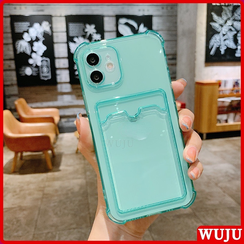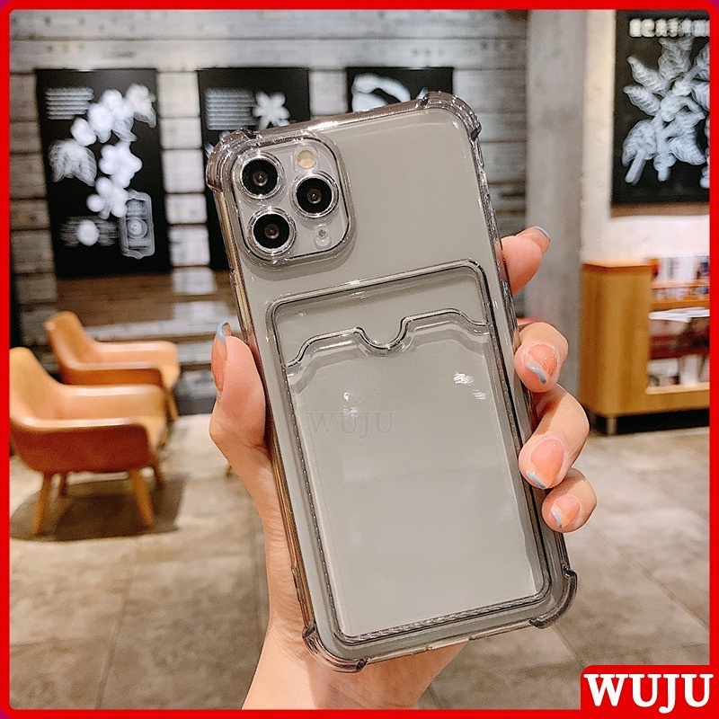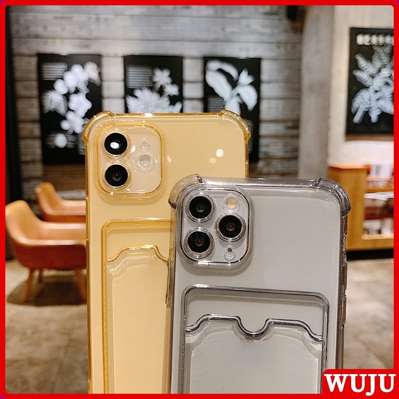 WUJU With Wallet Clip Card Holder Shockproof Clear Phone Case Compatible For iPhone 11 12 13 Pro Max X XS Max XR 7 8 Plus SE 2020 Soft Silicone Transparent TPU Cover Case