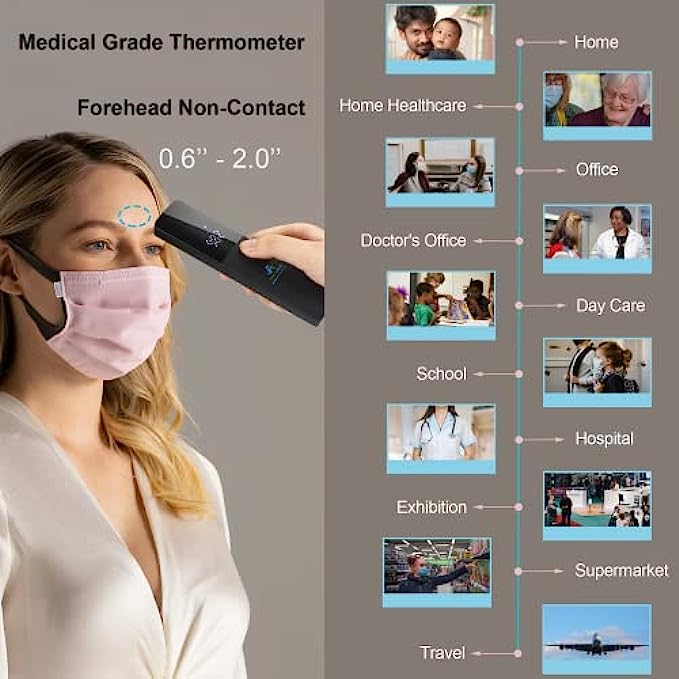 • SAFE FOR ALL: Our noninvasive, contact-free IR Infrared thermometers are more comfortable, hygienic, and easier to use than rectal, oral, ear, or armpit thermometers; For use on adults, children, toddlers, or infants; Termometro para bebes o adultos; Used by doctors, nurses, and healthcare professionals