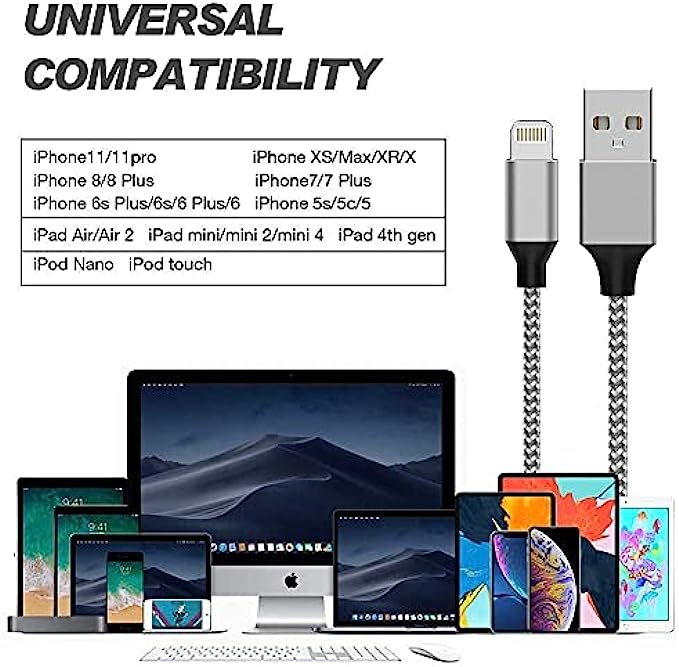 • ♠【Perfect Compatibility】: iPhone Charger Cable for iPhone 12Pro Max/12Pro/12/iphone xr /iphone xs / xs max /iphone x/ iphone 10/ iphone 11/iphone11 pro/iphone 11 pro Max, iPhone 8 / 8 Plus, iPhone 7 / 7 Plus, iPhone 6s Plus / 6s / 6 Plus / 6, iPhone 5s / 5c / 5 / SE, iPad / iPod and more.