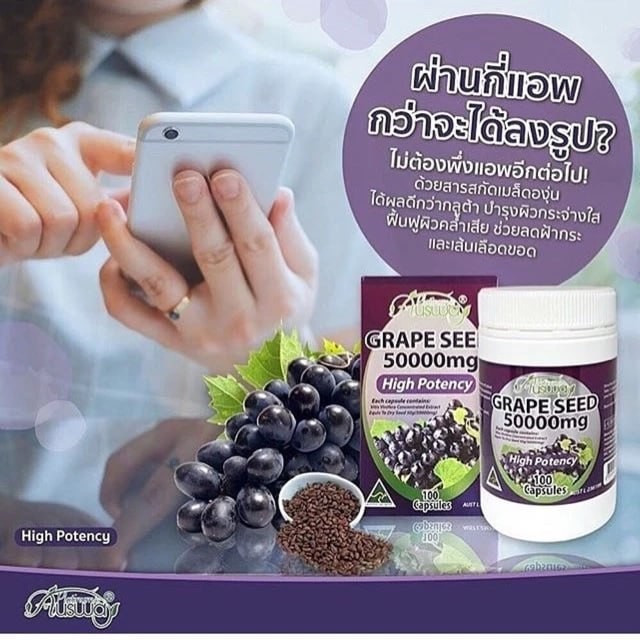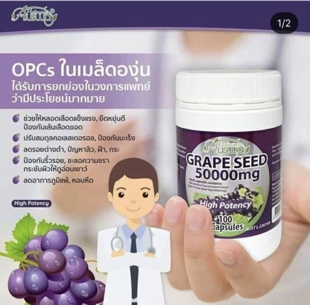 Ausway grape seed 50000mg ?เมล็ดองุ่นเข้มข้น?? ออสเวย์ 100แคปซูล