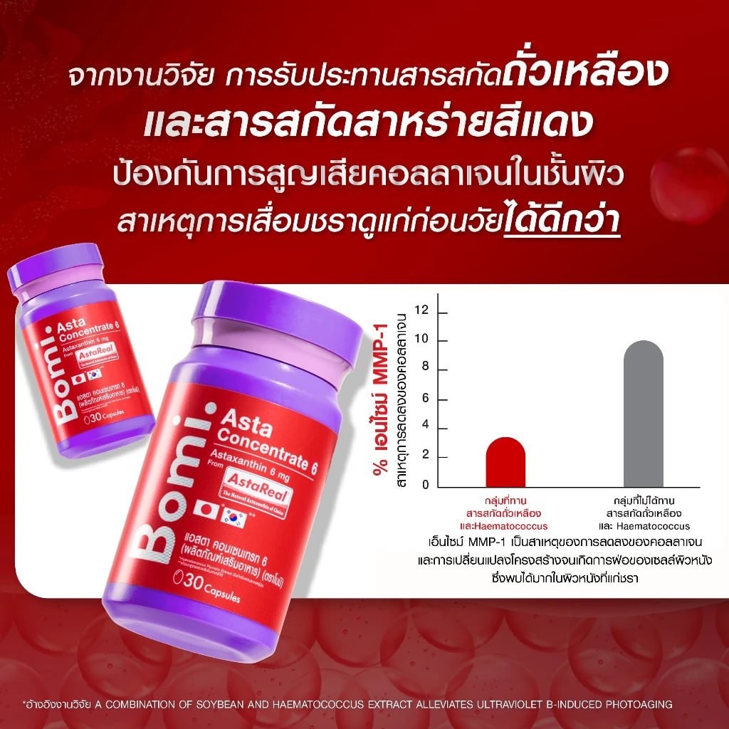 Bomi AstaReal Asta Concentrate 6 (30 Capsules)แอสตาแซนธิน ผิวกระชับ เนียนนุ่ม ชุ่มชื้น ลดความหมองคล้ำ