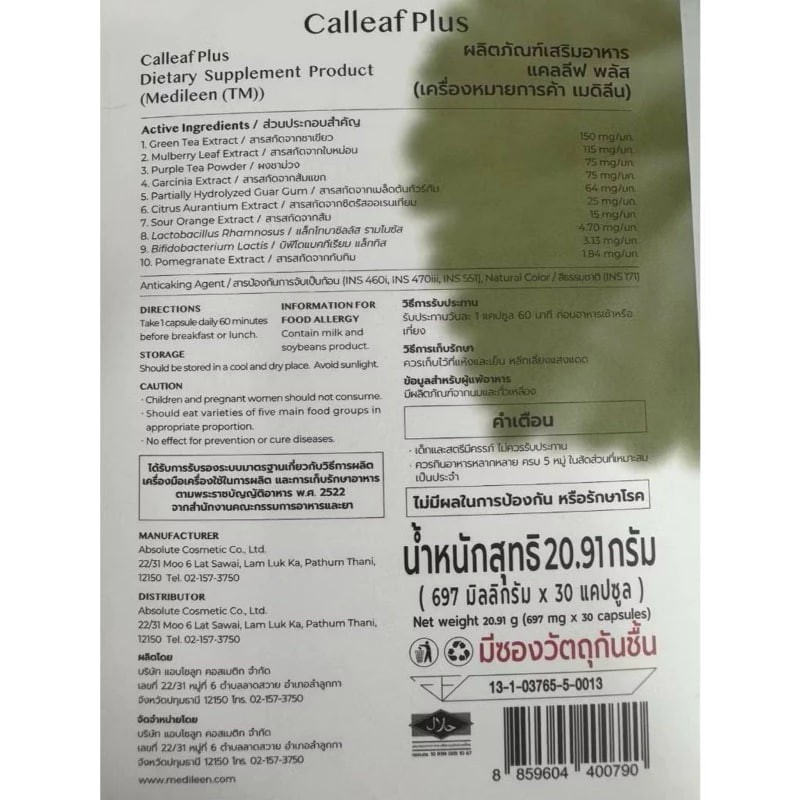 ใหม่ Calleaf Plus แคลลีฟ พลัส อาหารเสริม