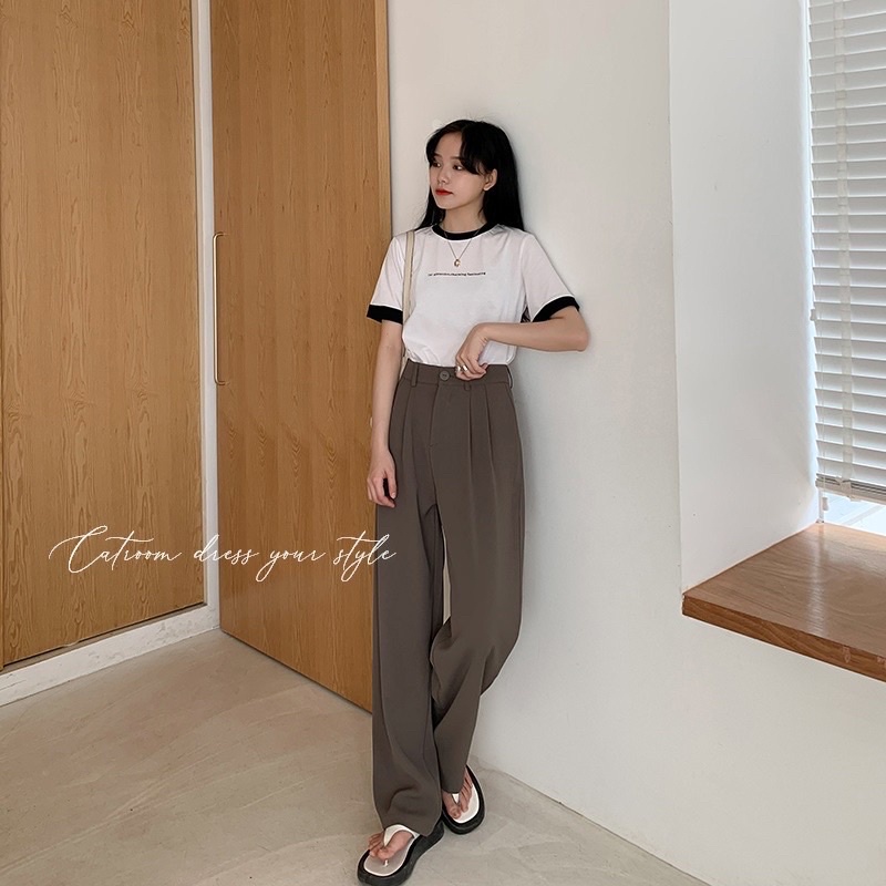 現+預【CATROOM】高CP值4色?顯腿長系列!高腰顯瘦 女生長褲 垂墜質感 壓褶寬褲 西裝落地褲闊腿褲高腰西裝褲