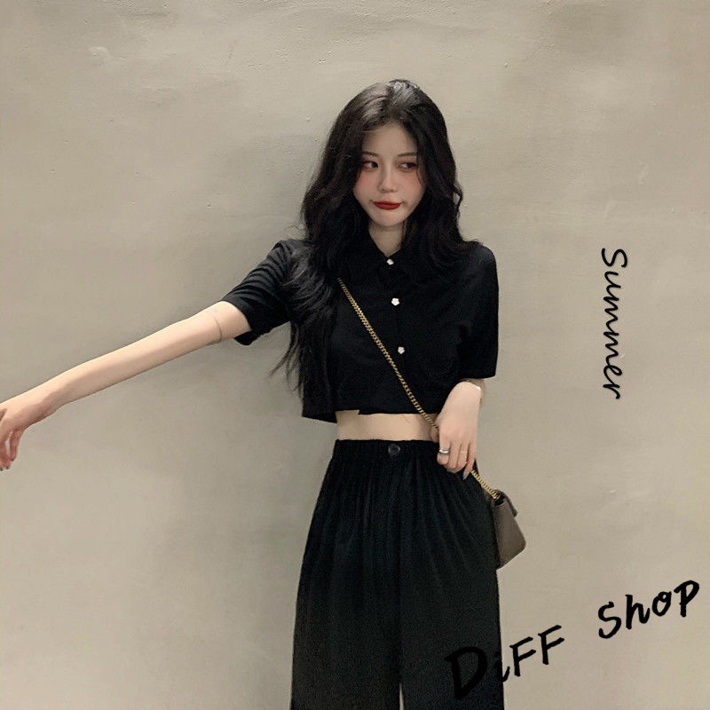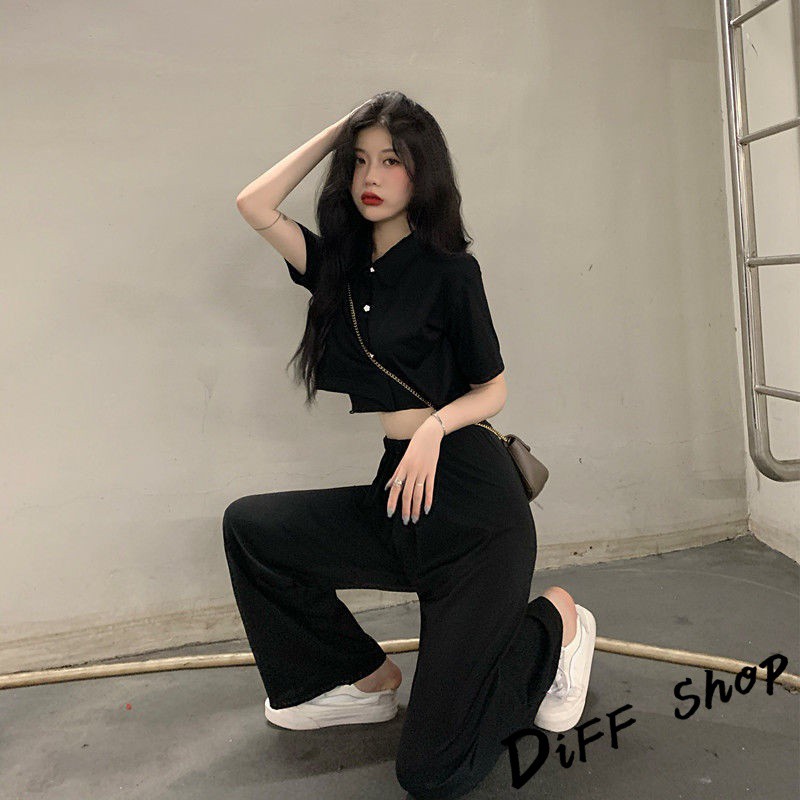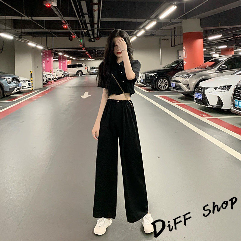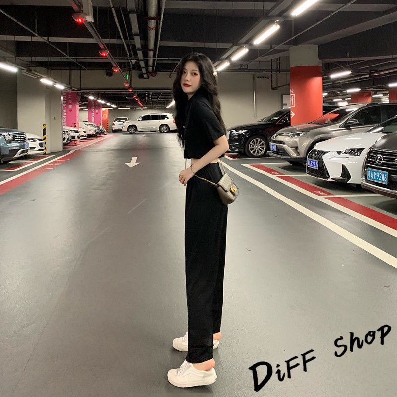 【DIFF】韓版氣質小個子顯瘦短版上衣+寬褲 兩件套裝 短袖上衣 短袖t恤 褲子 長褲 休閒褲【S120】