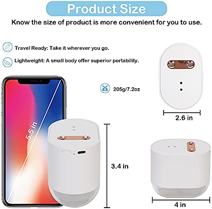 • ✔️Portable & Widely Use : Leak-proof and lightweight design, portable sterilizer and mist disinfectant sprayer. Automatic induction spray, safe and ample misting without disturbing children and adults. It can be carried in your bag and used anywhere. Suitable for cleaning hands, cell phones, glasses, keys, pens or remote controls.