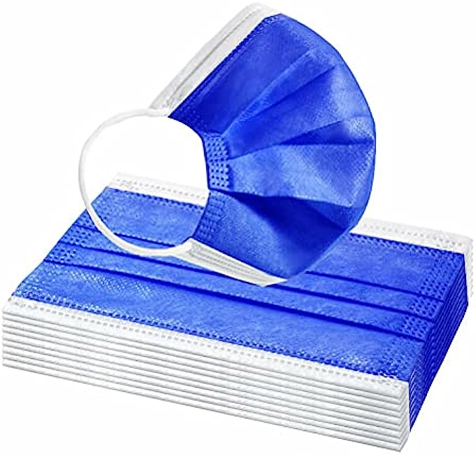 Face Mask 100pcs Royal Blue Disposable Masks Breathable 3 Layer Dust Masks Mouth Cover with Elastic Ear Loop for Adult Men & Women