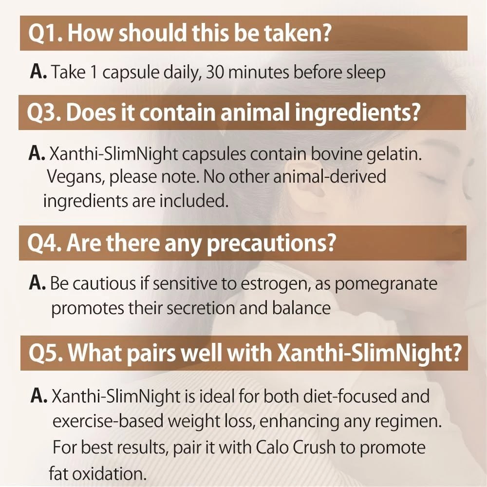 ด้วยการผสานสารสกัดจากธรรมชาติ Xanthi-Night ถูกออกแบบมาเพื่อผู้ที่ใส่ใจรูปร่างและต้องการจัดการการควบคุมน้ำหนักอย่างมีประสิทธิภาพในขณะพักผ่อน