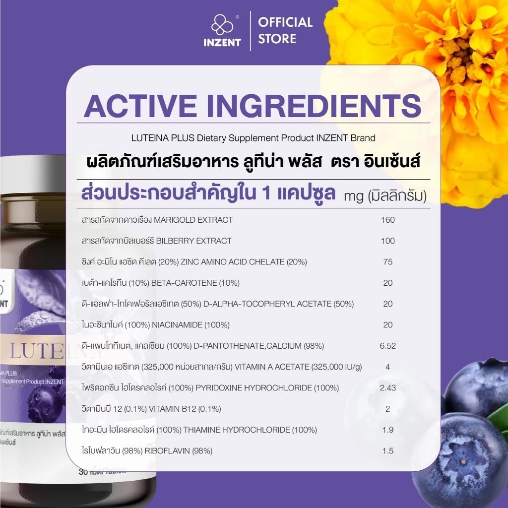 สูตรใหม่!Luteina Plus+ ลูทีนเเละซีเเซนทีน วิตามินบำรุงสายตา ตราอินเซ้นส์