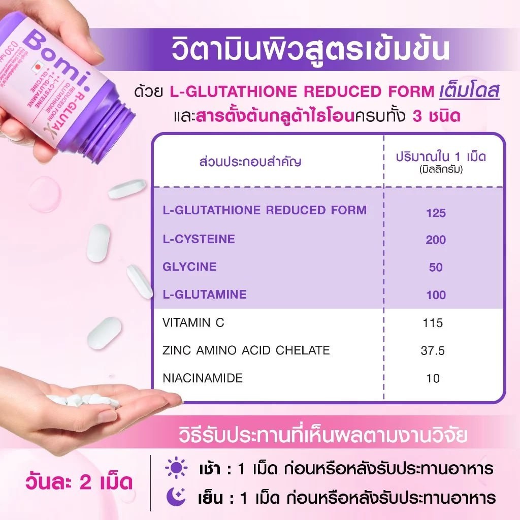 Bomi R-Gluta X 30 Tablets โบมิ อาร์-กลูต้า เอ็กซ์ วิตามินผิวเข้มข้น แลดูผิวขาวสว่างใส ดุจเปิดไฟให้ผิว