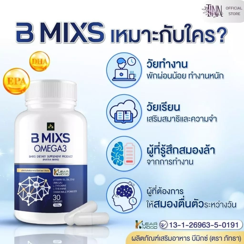 BMIXS Omega3 บีมิกซ์ โอเมก้า3 วิตามินบำรุงสมองระบบประสาท เพิ่มความจำ [1 กระปุก 30 แคปซูล]