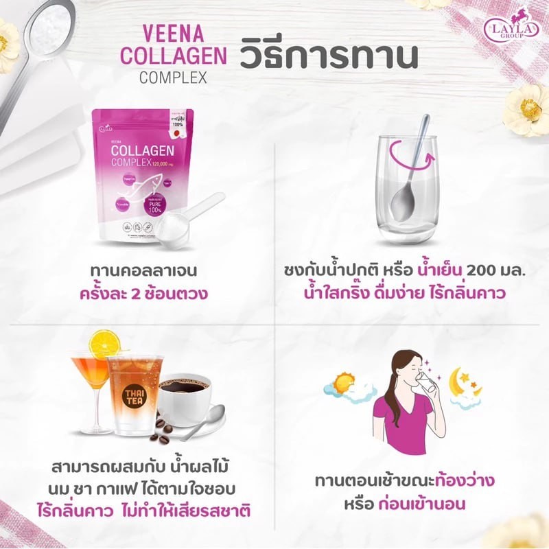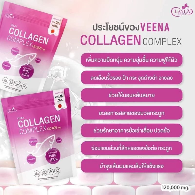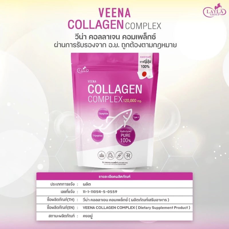 Veena Collagen วีน่าคอลลาเจน คอลลาเจน 3 สายพันธุ์ ดูดซึมไว ชะลอวัย บำรุงผิว ผม เล็บ ไขข้อ และกระดูก