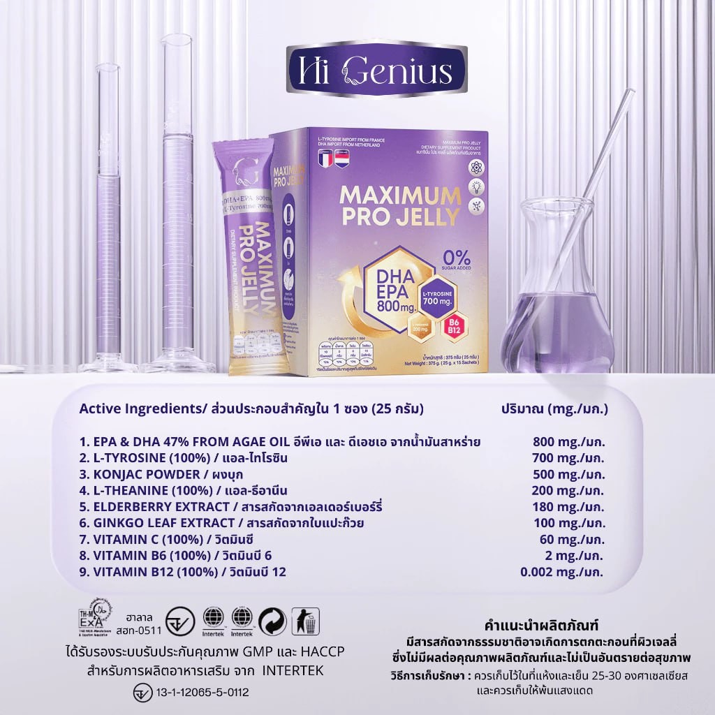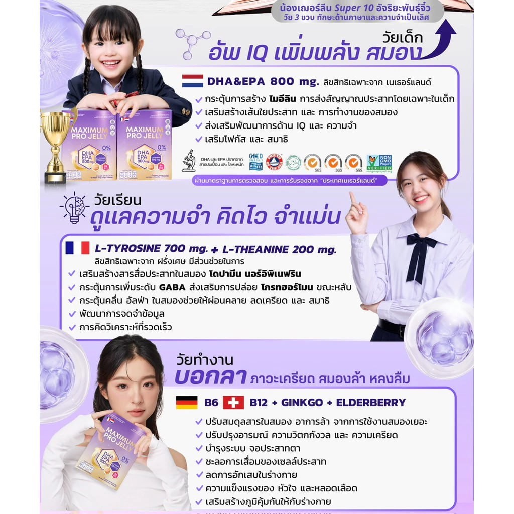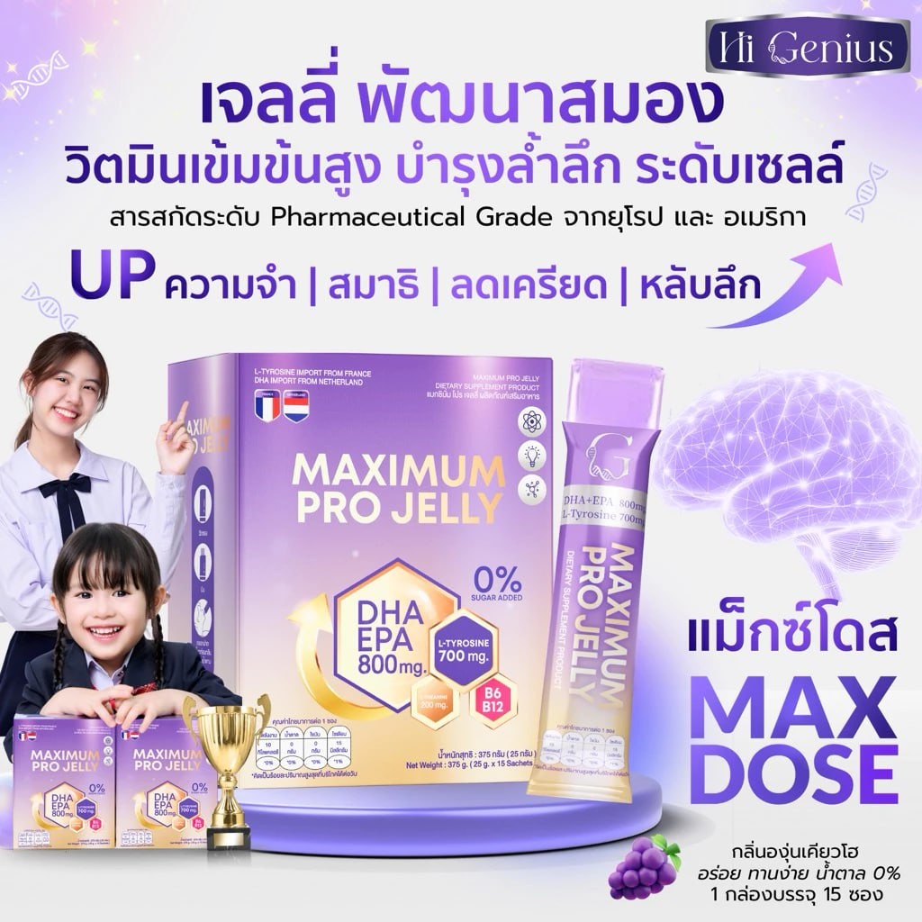 Maximum Pro Jelly พรีเมี่ยมอัพเกรด DHA800 mg เจลลี่ไฮจีเนียส 2 กล่อง บำรุงสมอง เสริมฉลาด เสริม IQ สมาธิ