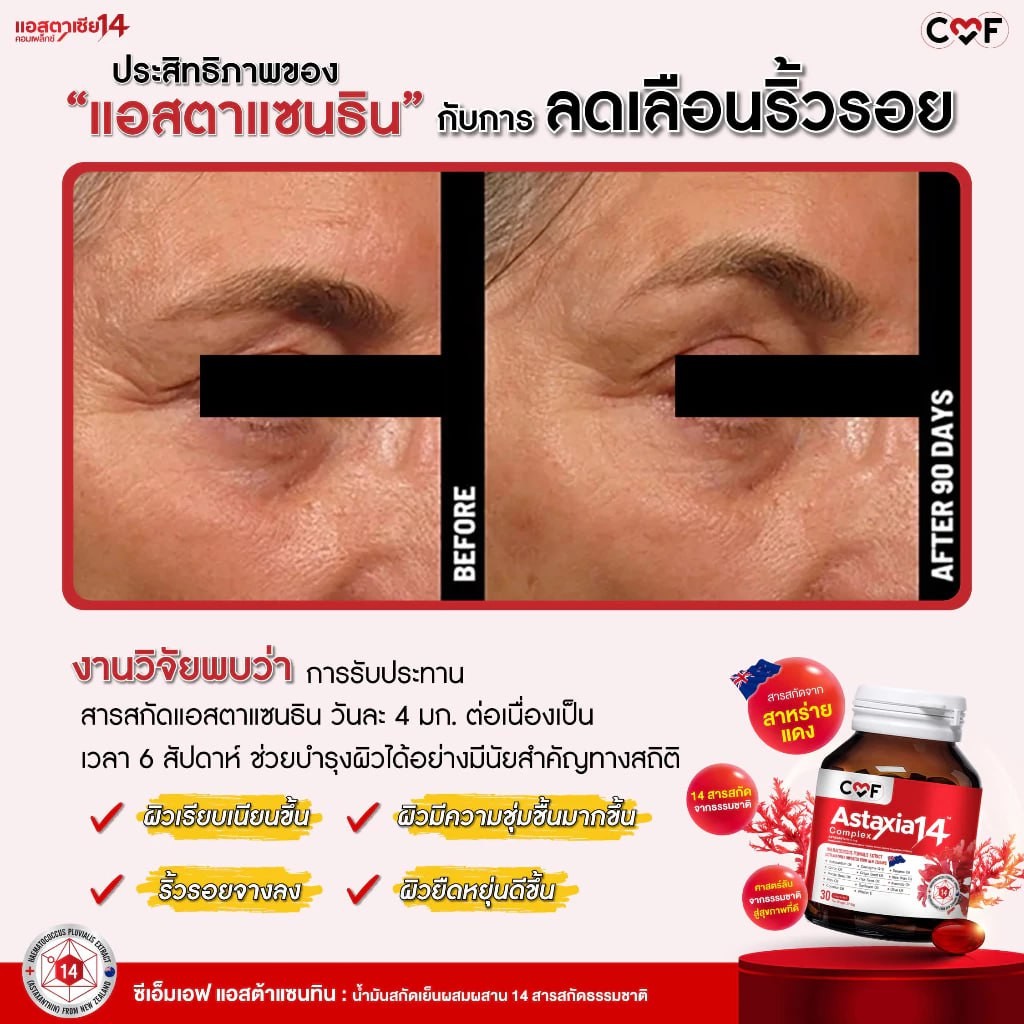 น้ำมันสกัดเย็นผสม 14 สารสกัดจากธรรมชาติขั้นสุดของสารต้านอนุมูลอิสระ Astaxanthin นำเข้าจาก ประเทศนิวซีแลนด์ มีประโยชน์ที่หลากหลายต่อร่างกาย ทั้งในด้านการดูแลสุขภาพหัวใจ , สุขภาพผิว, การลดคอเลสเตอรอล, การต้านอนุมูลอิสระ, การลดการอักเสบ การสนับสนุนระบบภูมิคุ้มกัน และลดความเสี่ยงของโรคเรื้อรัง.