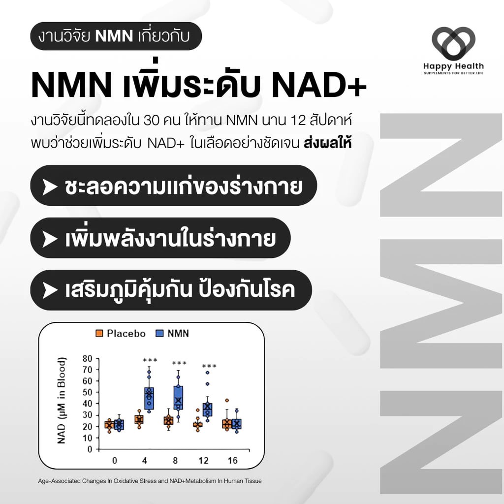 ✅ การรับประทาน NMN 600900 mg ต่อวัน ช่วยเพิ่มระดับ NAD+ ในเลือดอย่างมีนัยสำคัญภายใน 60 วัน