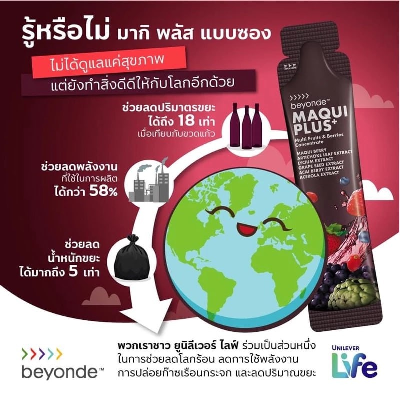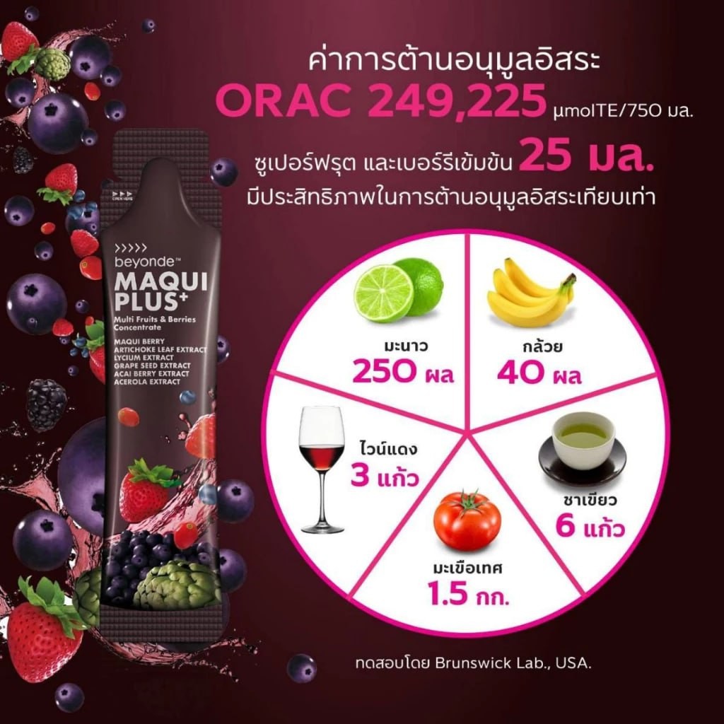 บียอนด์ มากิ พลัส แบบซอง (MAQUI PLUS+) ผลิตภัณฑ์เสริมอาหารชนิดน้ำ เครื่องดื่มผลไม้สกัดเข้มข้นจากมากิเบอร์รี่และผลไม้รวม เพื่อสุขภาพดีแบบองค์รวมจากภายในสู่ภายนอก ราคาพิเศษสำหรับสมาชิกที่นี่ที่เดียว