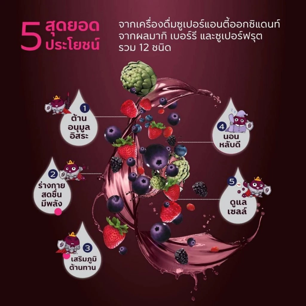 เครื่องดื่มซูเปอร์แอนตี้ออกซิแดนท์ชนิดน้ำ จากผลมากิ เบอร์รี และซูเปอร์ฟรุต รวม 12 ชนิด ช่วยเสริมสารต้านอนุมูลอิสระ