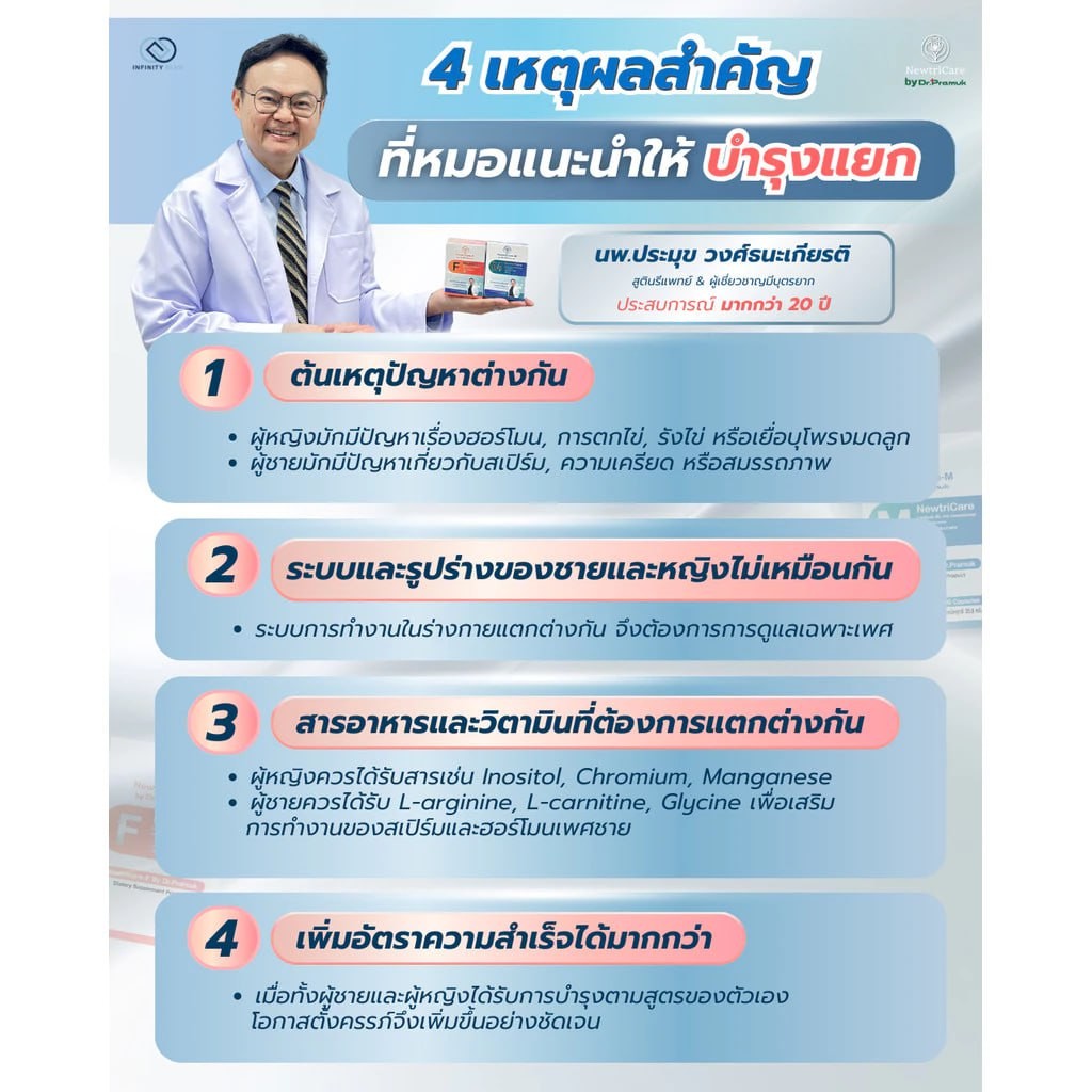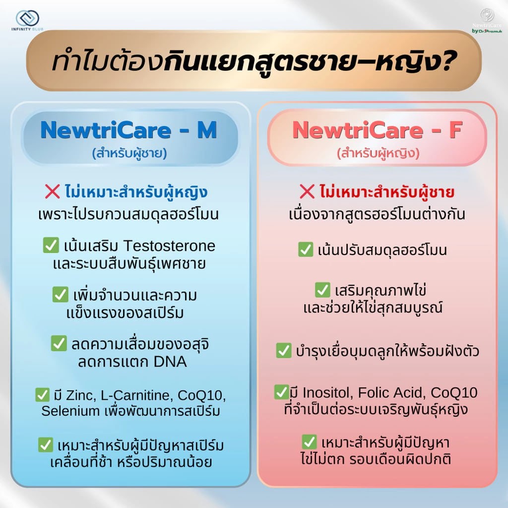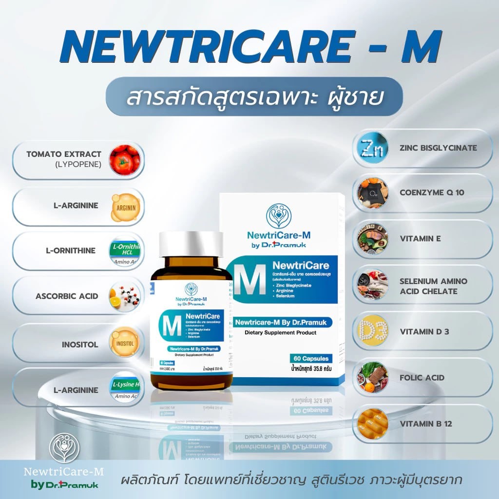 (สินค้าใหม่!!!) Newtricare-M + Newtricare-F  by Dr.Pramuk ผลิตภัณฑ์เสริม วิตามินสำหรับผู้ชายและผู้หญิงที่อยากมีบุตร ฮอร์โมนสมดุล ร่างกายเเข็งเเรง (1กระปุก/60เม็ด)