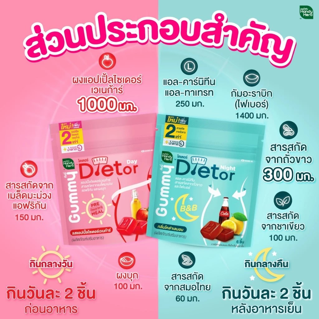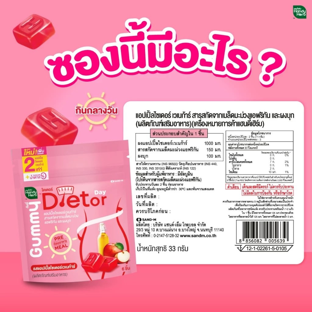 HandyHerb Dietor Day Gummy ไดเตอร์ เดย์ กัมมี่ สูตรเข้มข้นขึ้น 2 เท่า รสแอปเปิ้ลไซเดอร์เวเนก้าร์ เคี้ยวก่อนมื้ออาหาร