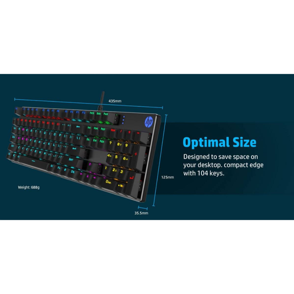 HP GK400F WIRED MECHANICAL GAMING RGB KEYBOARD WITH BLUE SWITCH , ANTI RUST & SCRATCH AND METAL FRAME