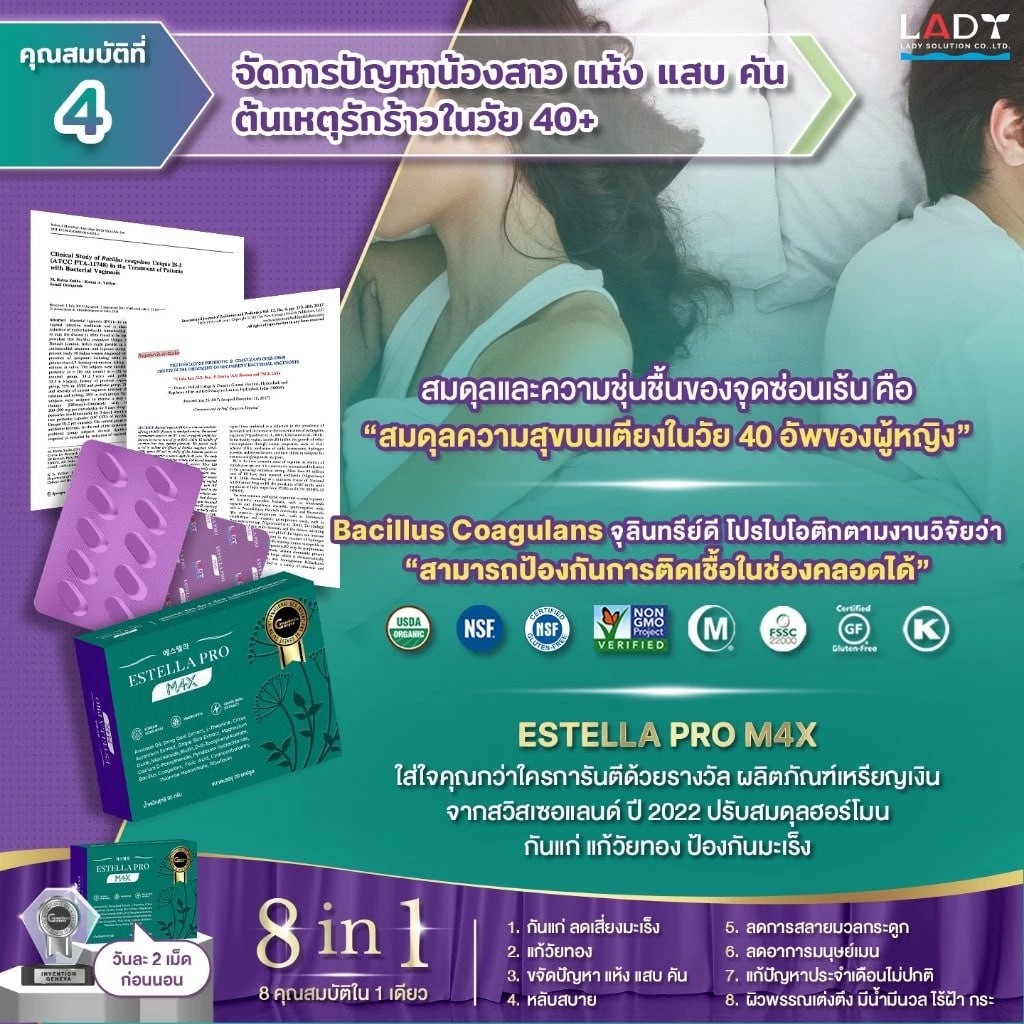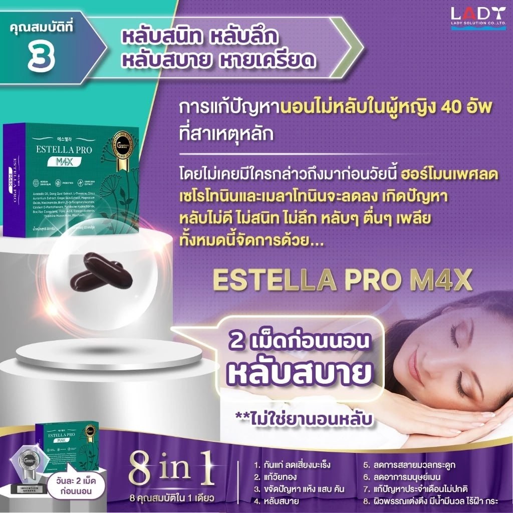 Estella Pro M4X อาหารเสริมผู้หญิง 40+ ต้องมี ช่วยลดอาการรบกวนฮอร์โมน ผิวอิ่ม นอนหลับดีขึ้น ส่งฟรี
