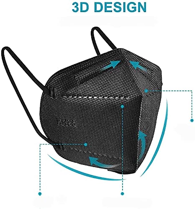 • ✔The 3D structure is designed according to the human face shape to ensure the tightness and safety. With soft elastic stretchable ear loop,which helps eliminate pressure on the ears for comfortable experience. Adjustable nose clip can help the mask perfectly attach onto your face.The four sides join tightly to the face; Hence, the protective mask KN95 avoids unfiltered air directly entering into.