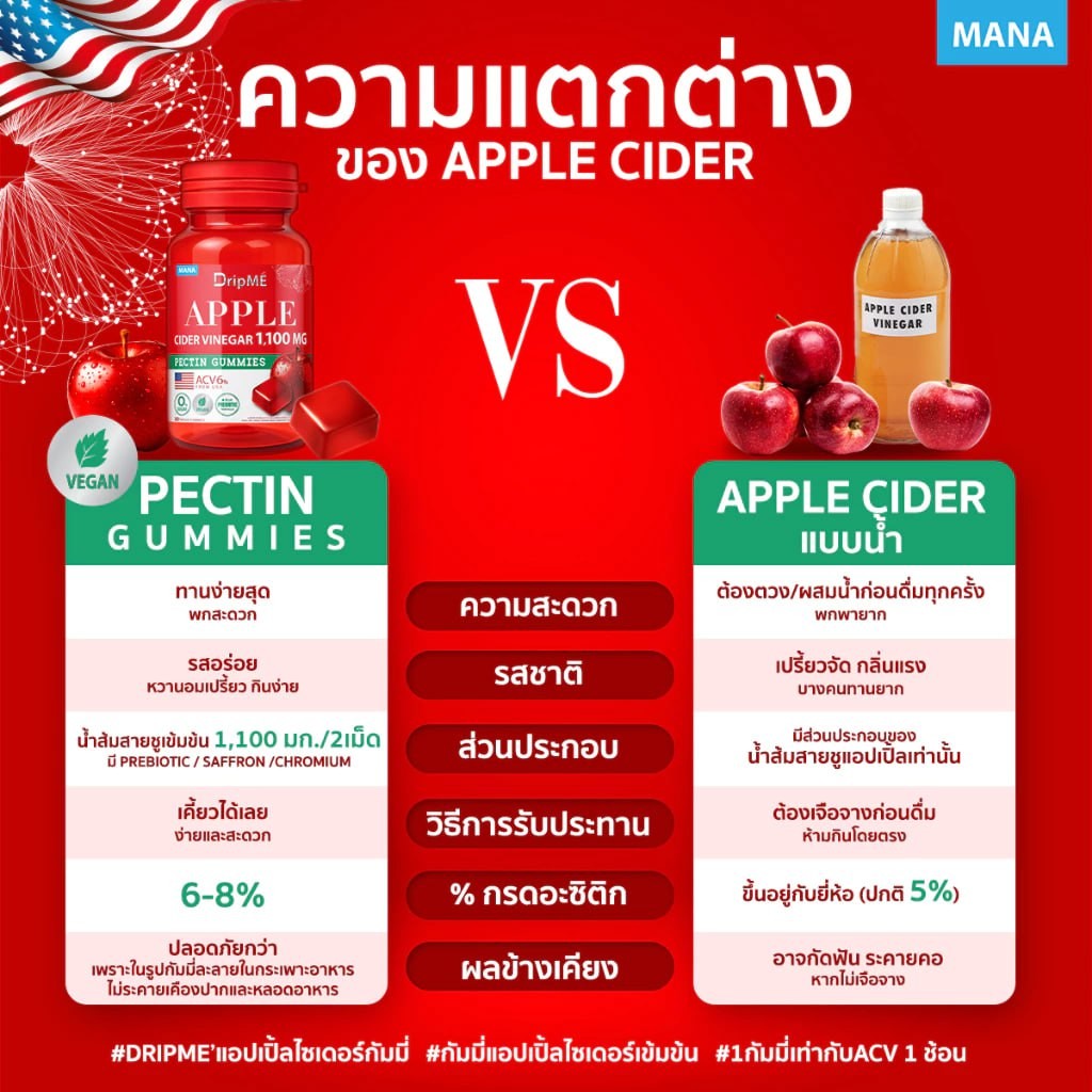 MANA DripME" Apple cider vinegar Gummies มานา ดริปเม่ แอปเปิ้ลไซเดอร์ กัมมี่