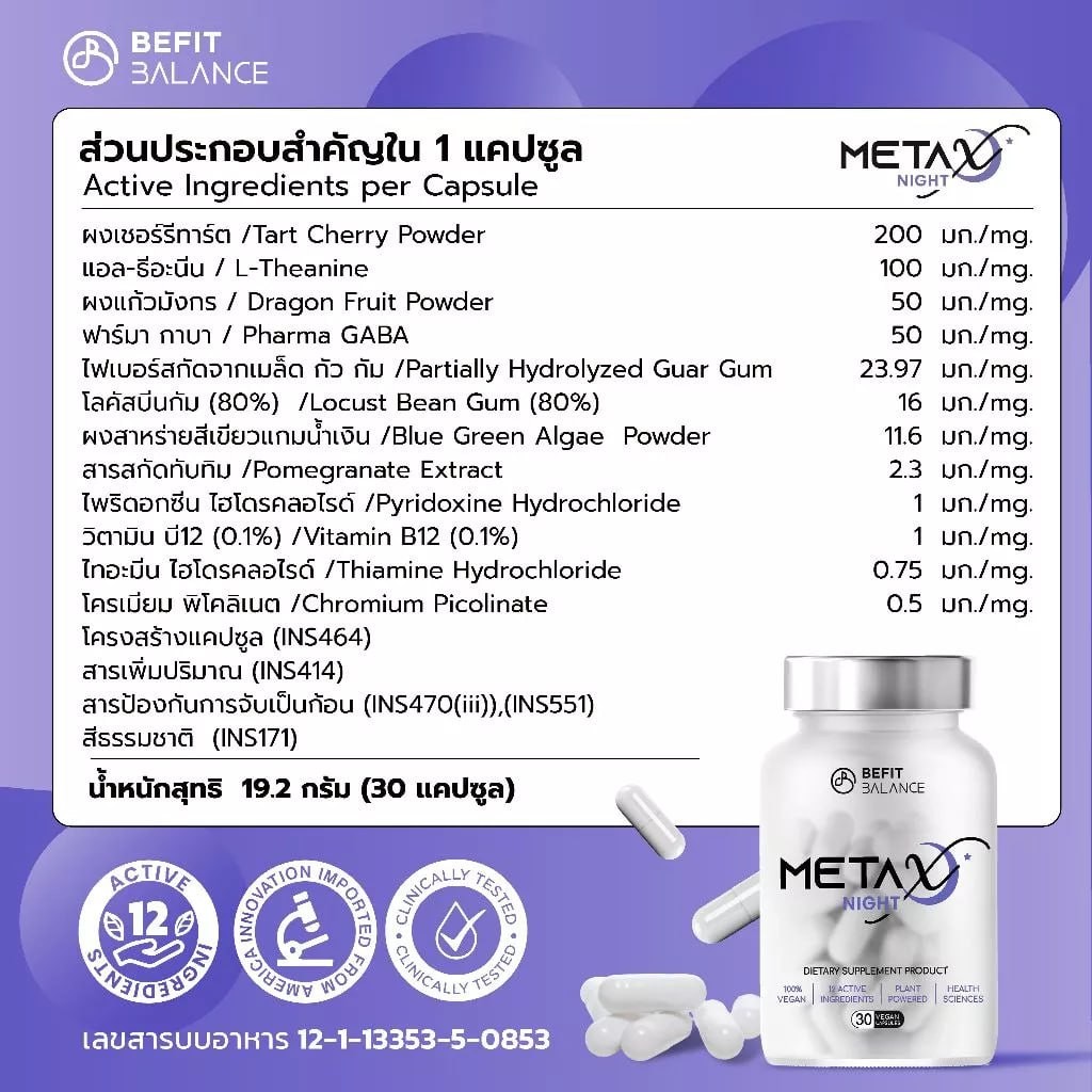 BeFitBalance META X NIGHT 30 CAPSULES อาหารเสริมช่วยหลับสนิท ด้วยสารสกัดจาก Tart Cherry L-Theanine Pharmagaba