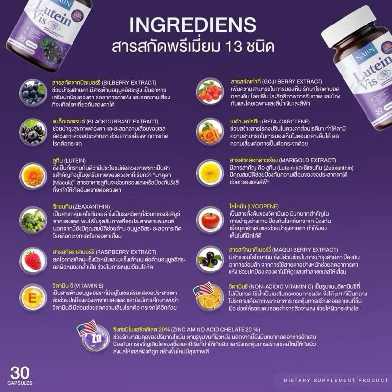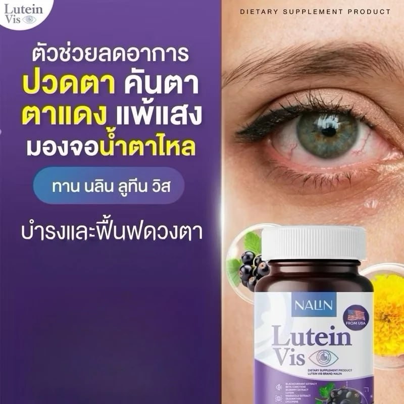 จุดเด่นเพื่อสายตาที่ใส! นลิน ลูทีน วิส วิตามินบำรุงสายตา ช่วยบำรุงสายตา ลดอาการตาพร่า และป้องกันแสงหน้าจอ เหมาะสำหรับผู้ที่ใช้สายตาหนักในทุกช่วงวัย ?? รายละเอียดสินค้า - ผลิตภัณฑ์เสริมอาหารที่ช่วยดูแลสุขภาพตาและป้องกันการเสื่อมสภาพของเซลล์ประสาทตา - ลดอาการตาพร่าและตามัว พร้อมป้องกันแสงหน้าจอที่อาจเป็นอันตราย รายละเอียดสูตรและแพ็คเกจ - ขนาดบรรจุ 30 แคปซูลต่อกระปุก เลือกนลิน ลูทีน วิส แล้วคุณจะมั่นใจในสายตาที่ใสและสุขภาพที่ดีในทุกวัน!