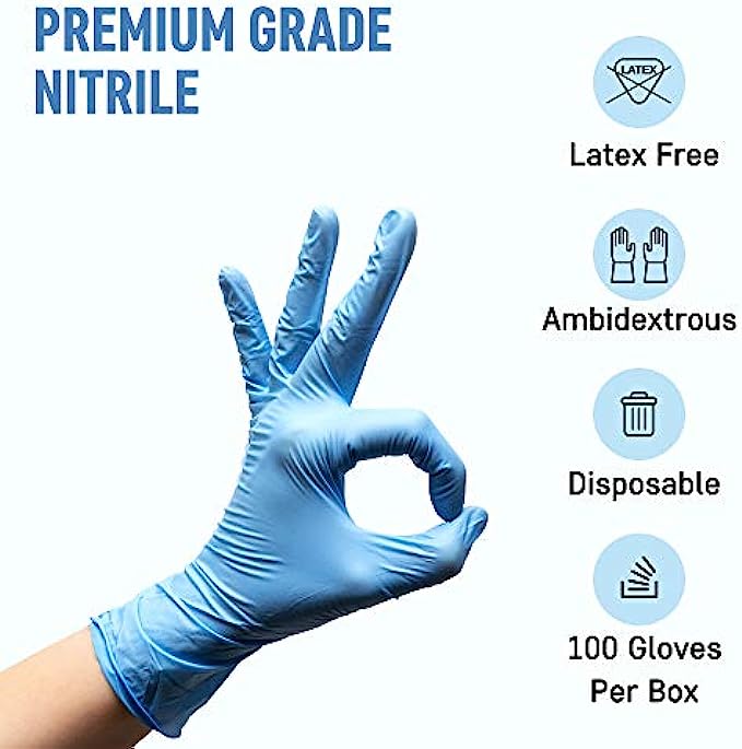 • SANITARY GLOVES: Ideal to keep yourself safe and sanitary, these premium disposable gloves are sapphire blue, have beaded cuffs and are ambidextrous. They come 100 to a box, and are available in many sizes, from Extra Small to X Large!