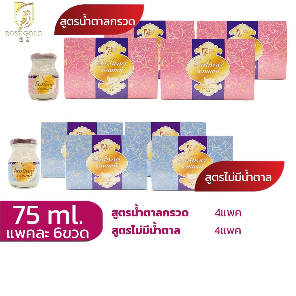 รังนกrosegold75ml.ชุด8แพค(48ขวด) เครื่องดื่มรังนกโรสโกลด์ 75ml. สูตรน้ำตาลกรวด และ Sugar Free