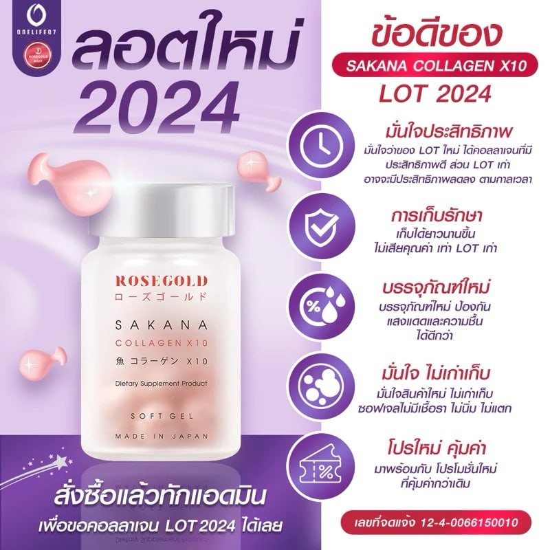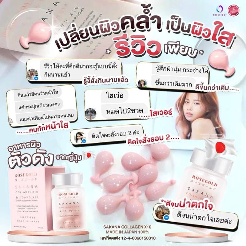 Sakana Collagen X10 คอลลาเจนแม่ชม Rosegold นำเข้าจากญี่ปุ่น ซาคานะ สิว ฝ้า กระ