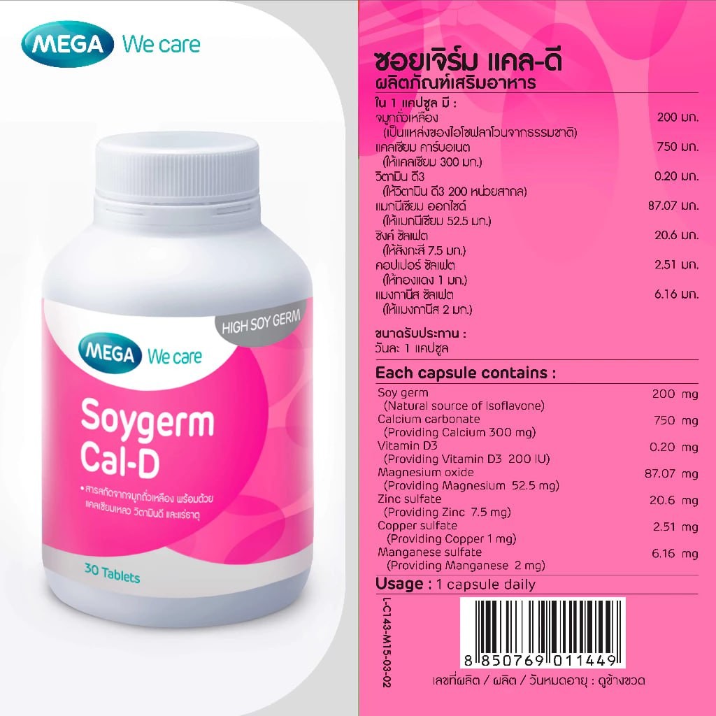 จมูกถั่วแหลือง 200 มก. (เป็นแหล่งของไอโซฟลาโวนจากธรรมชาติ)