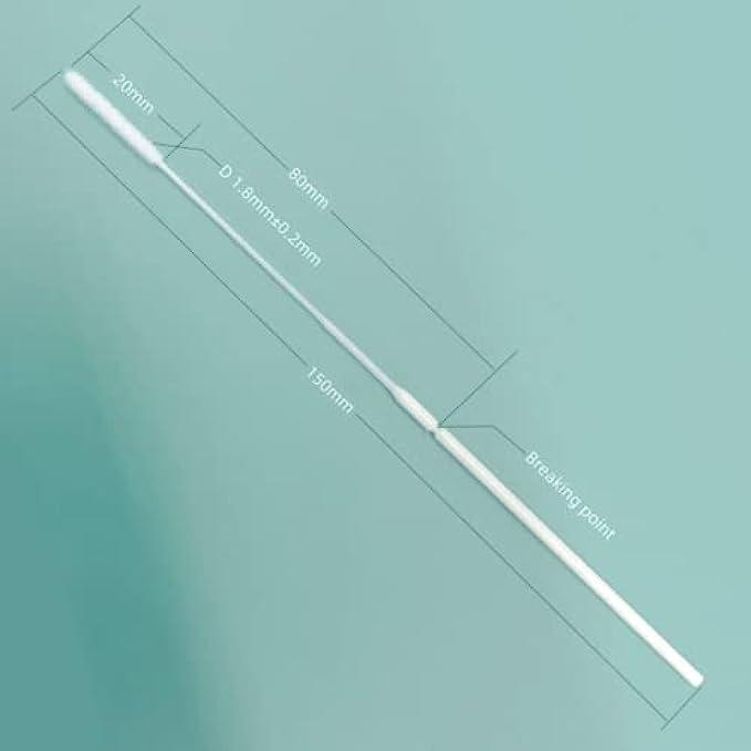 • Easy Break point and flexible rod made out of ABS plastic designed for a safe user experience. The swab is 150mm in length with a break point of 80mm.