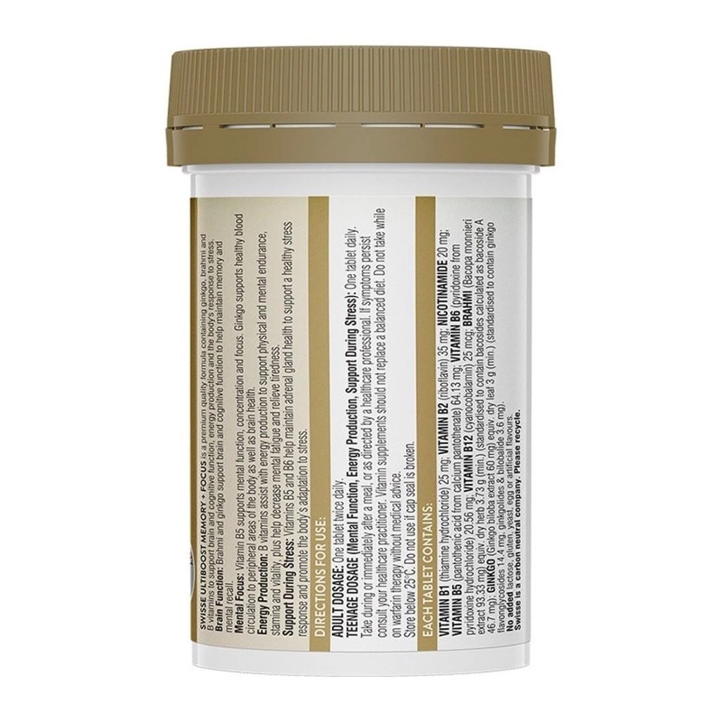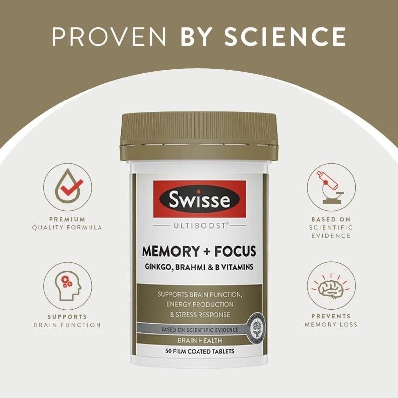 Swisse Ultiboost Memory + Focus ได้รับการคิดค้นขึ้นจากหลักฐานทางวิทยาศาสตร์เพื่อให้ส่วนผสมหลักที่เป็นประโยชน์ต่อการทำงานของสมองที่ดีต่อสุขภาพในขนาดที่สะดวก