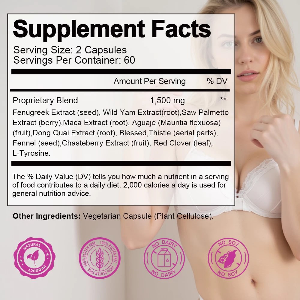 เพิ่มขนาดเต้านมและความกระชับป้องกันริ้วรอยและสิวส่งเสริมสุขภาพผิวที่ดีขึ้นและบรรเทาปัญหาวัยหมดประจำเดือน