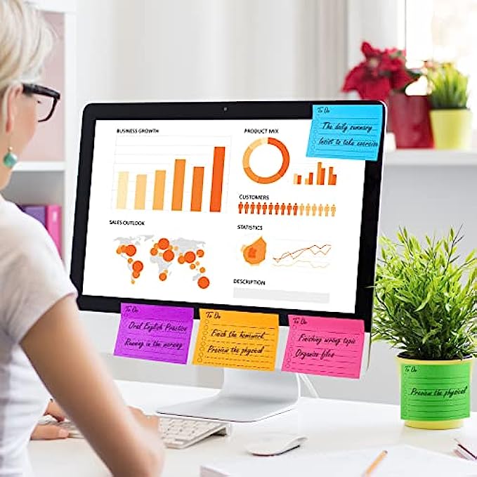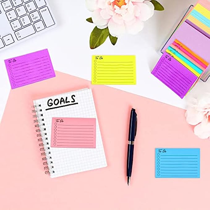 Simple to Use: sticky note to do list is made of quality paper, with good stickiness, which is sturdy, easy to paste and will not peel off; It is very suitable for pasting on books, folders, glass, displays and file cabinets