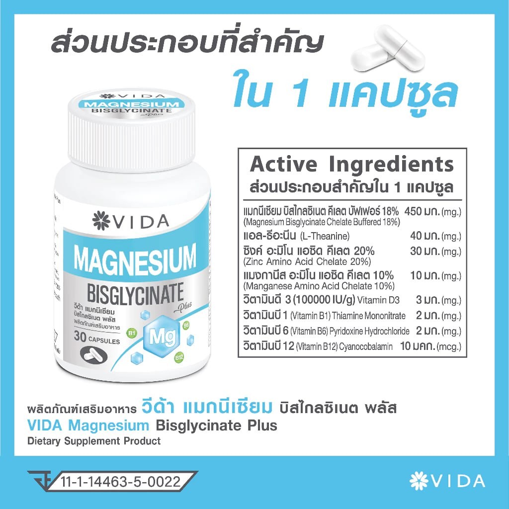 Vida Magnesium Bisglycinate 30 Capsules (วีด้า แมกนีเซียม บิสไกลซิเนต 30 แคปซูล)