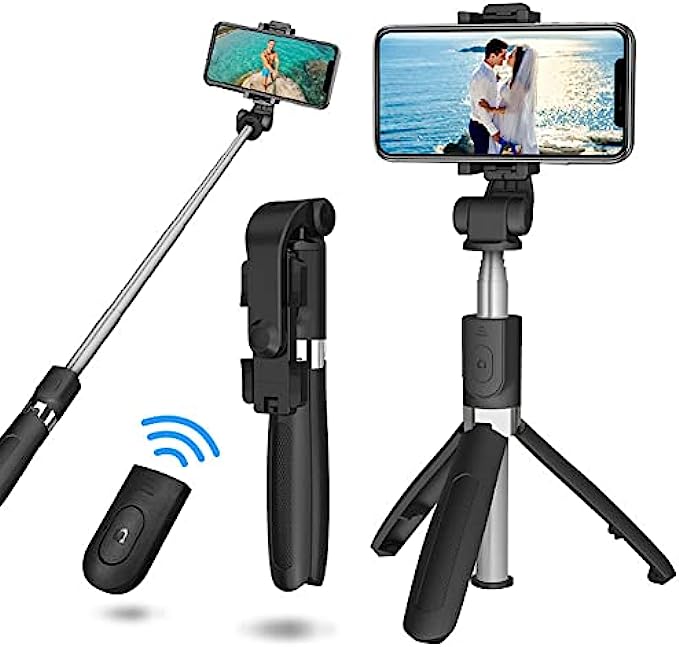 All In One Design: Selfie stick & tripod, all retract in one piece, 3 in 1 multifunction selfie stick tripod with wireless remote
