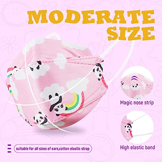 • Versatility: 50 pieces per box, 10 pieces per pack, 5 packs in total. These kids cartoon KF94 masks are suitable for office, home, bicycle, grocery store, hospital office and all public places. It's the perfect mask to navigate crowded airports, bus stops, shopping malls and busy city streets.