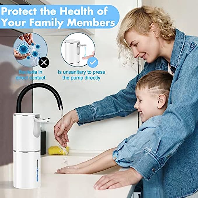 • FOLDABLE WATERPROOF AND WALL MOUNTED DESIGN: The nozzle and charging port are protected to IPX4 waterproof rating (avoid immersion in water), making it easier to clean. The hands-free soap dispenser foldable design can be placed on the bathroom wall or on the side of the kitchen sink to protect the soap dispenser from dust and water splashes.