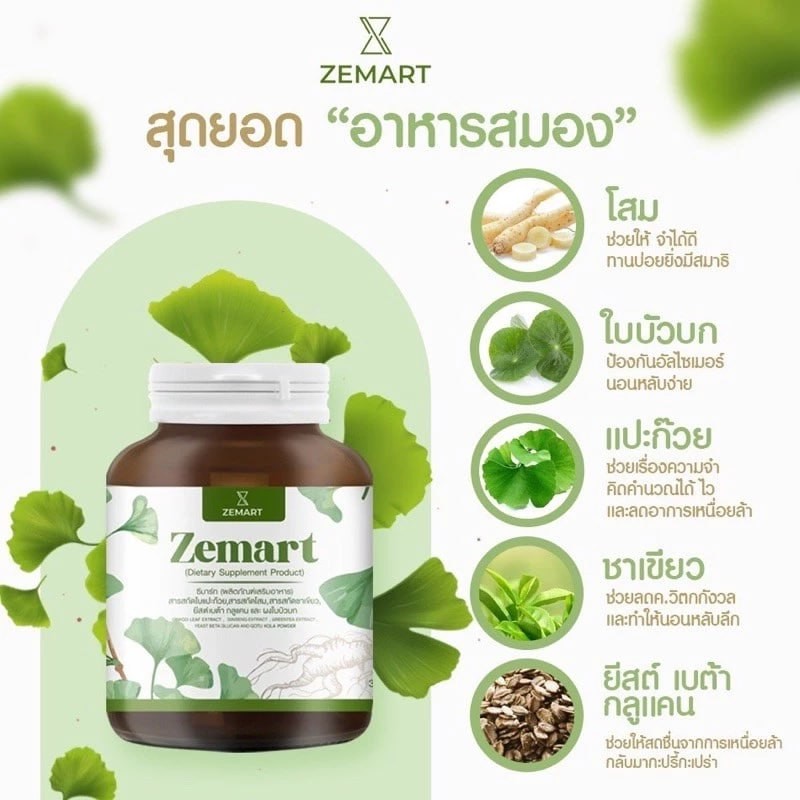 Zemart อาหารเสริมบำรุงสมอง เสริมความจำ เพิ่มสมาธิ ลดอาการอ่อนเพลีย